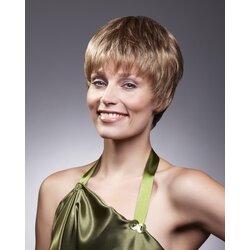 A feather light wig, pixie cut & short, with light textured layers and a soft fringe resulting in a realistic and comfortable style.